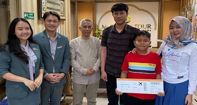 Solo Paragon Hotel & Residences bersama Mubarak Tour memberikan hadiah umrah dan tiket perjalanan Indonesia-Singapura kepada pemenang paket buka puasa Morocco Iftar, Selasa (03/06/2025). (Foto: Solo Paragon Hotel & Residences)