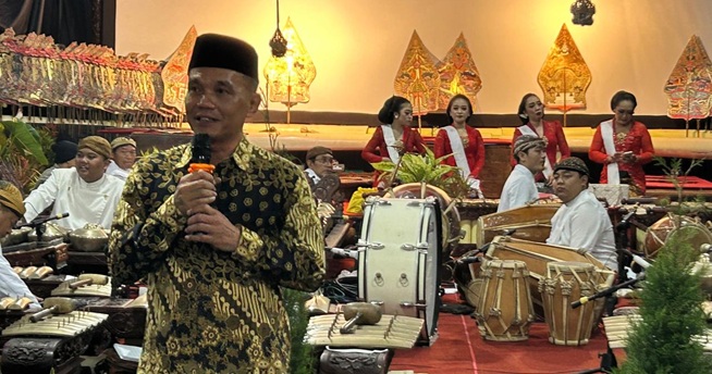 Ketua DPRD Jateng Sumanto saat menghadiri pagelaran wayang kulit.